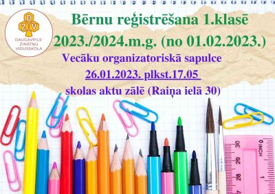 Daugavpils Zinātņu vidusskolas administrācija aicina topošo pirmklasnieku vecākus reģistrēt savu bērnu adaptācijas nodarbībām! Reģistrēšanās saite: https://forms.gle/brGfGaiuhNMnceDFA