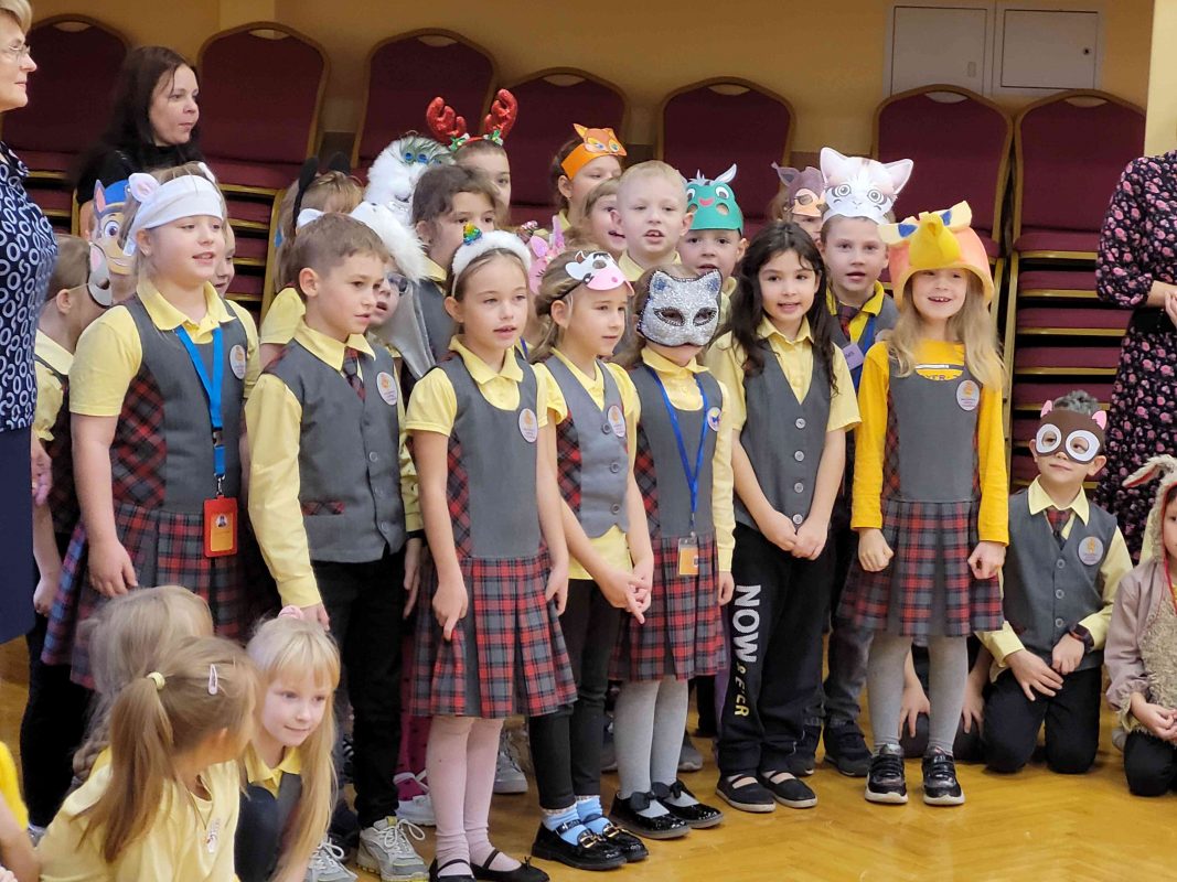 Savukārt 1. un 3.klašu skolēni, ģērbušies dažādās maskās, pulcējās skolas aktu zālē, lai kopā piedalītos svētku pasākumā, kuru veidoja 11.b klases skolnieces Ksenija Boltrukeviča un Ruslāna Jevdokimova. Abas jaunietes apgūst priekšmetu ”Teātra māksla” un pasākums bija apgūto teorētisko zināšanu praktiska realizēšana. Atbalstu un padomu skolniecēm sniedza literatūras skolotāja Ludmila Frolova.